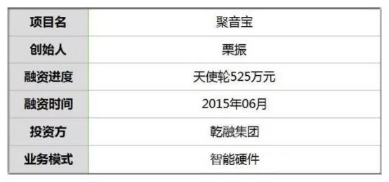 2015年6月,受蘇州市招商局邀請,聚音寶入駐了蘇州高新區科技城。當月,獲得525萬元融資,投資方為乾融集團。